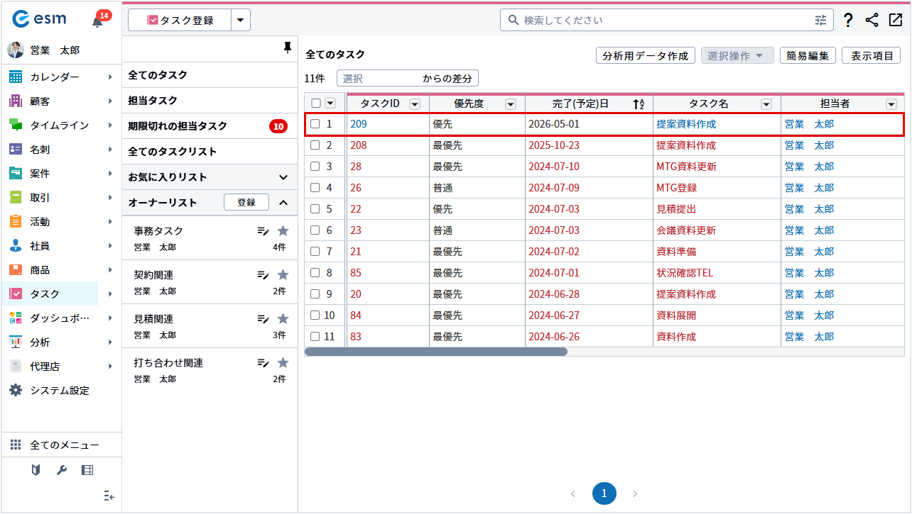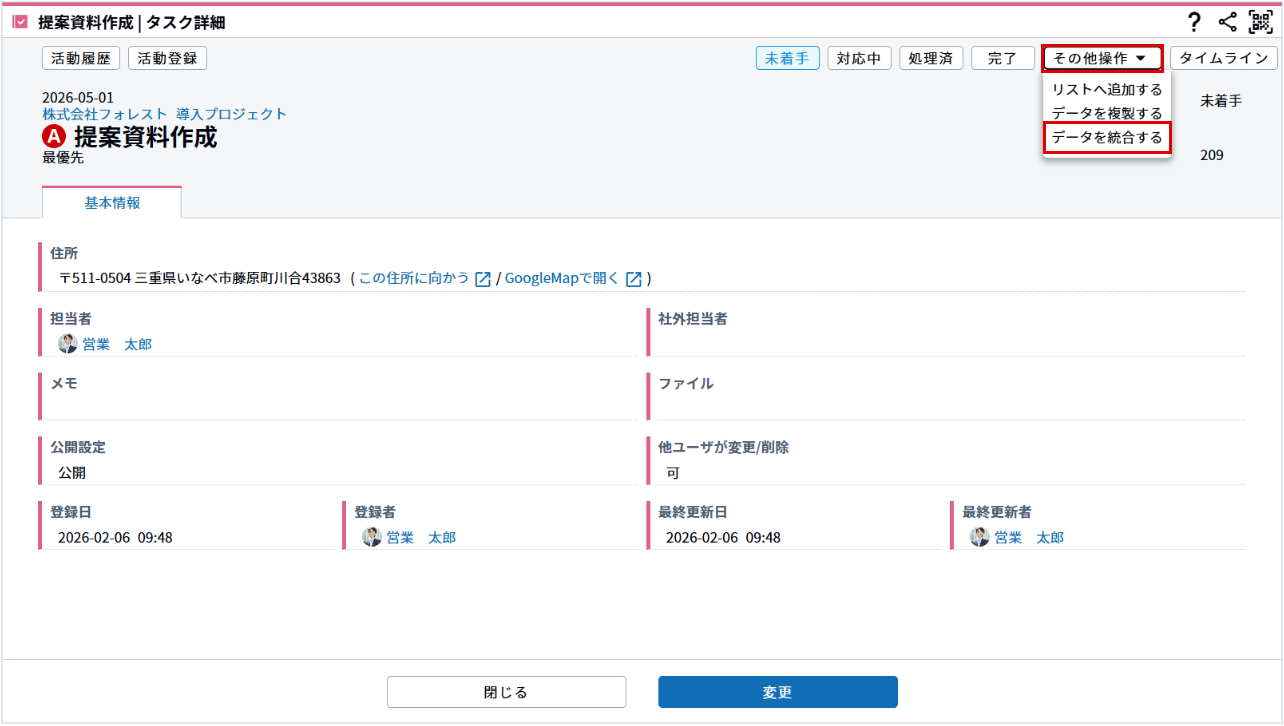 ・[タスク詳細]画面からも[タスク]の統合が可能です。