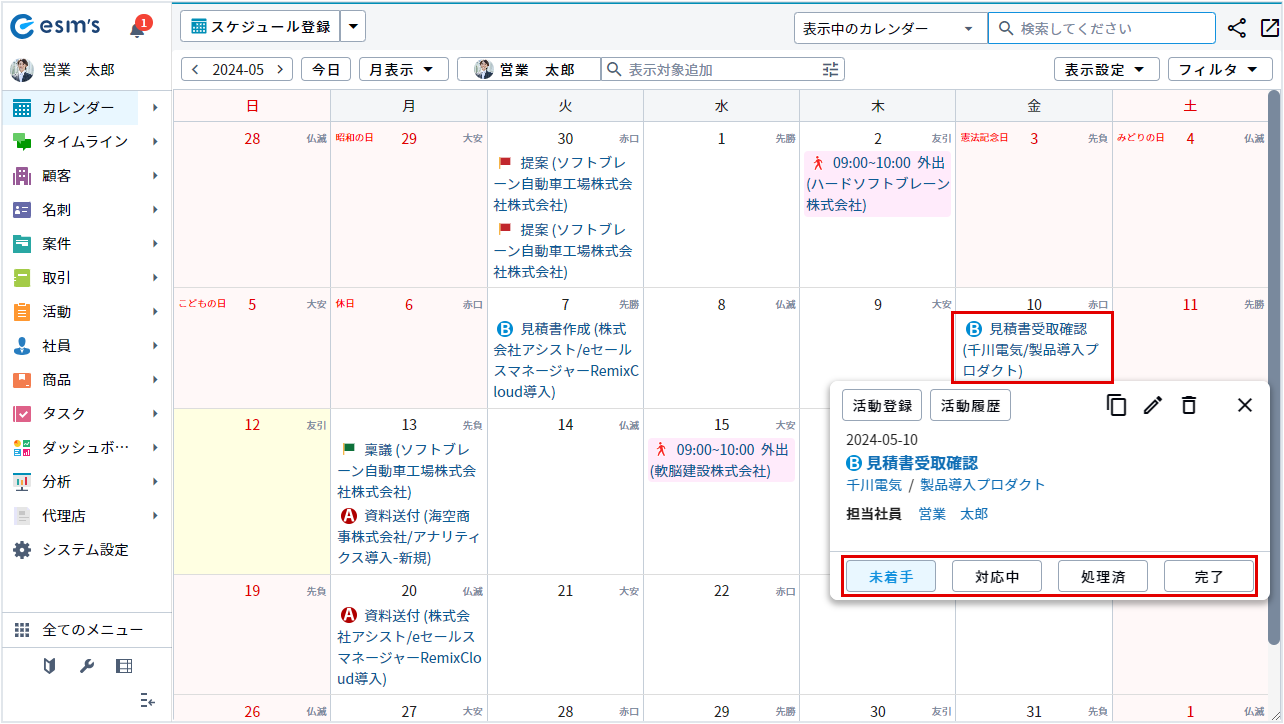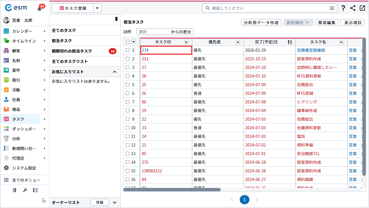 変更対象となる[タスク名]を選択し、ステータスをクリックします。