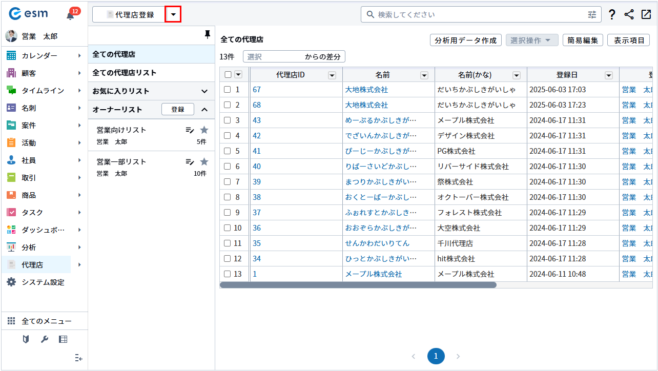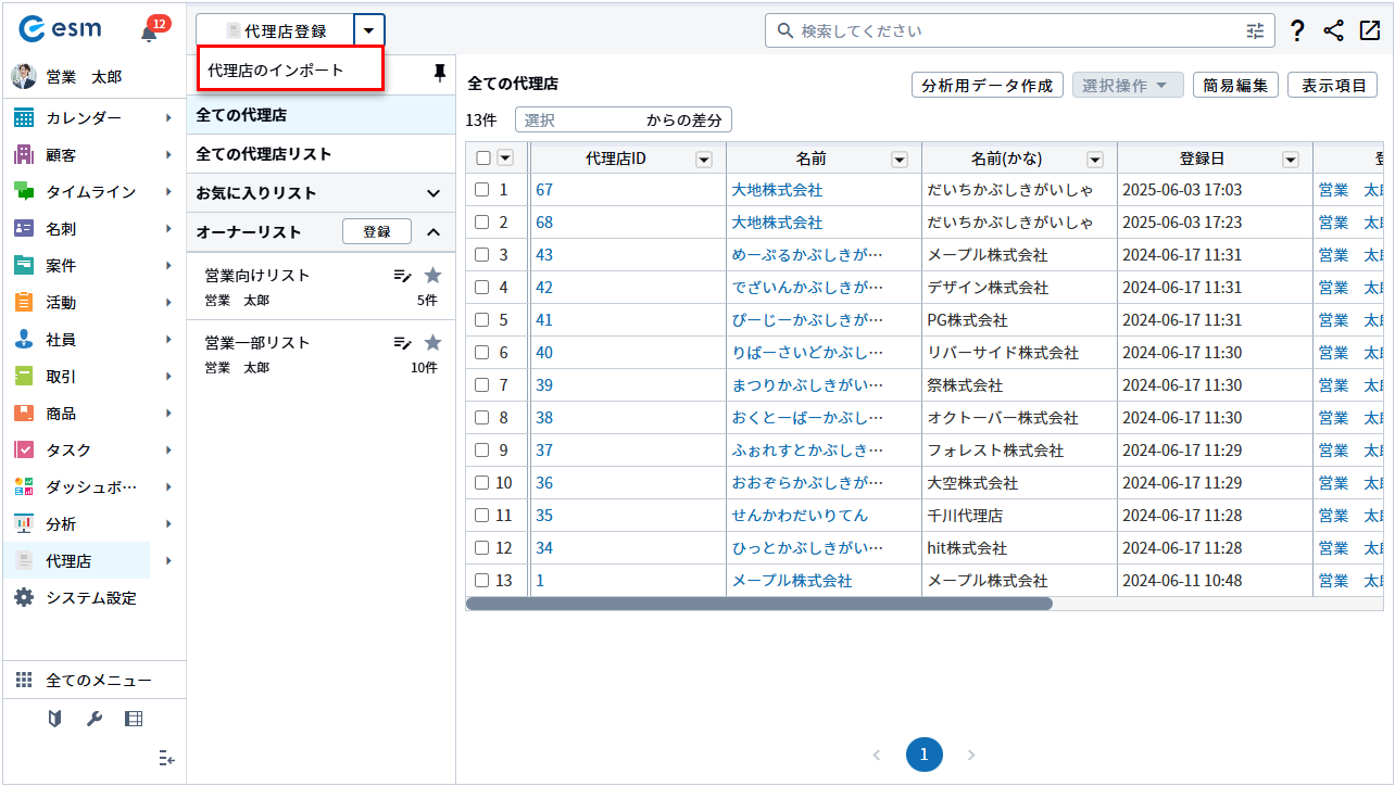 メモ | メモを記載します。 | 【例】新しい代理店 |
