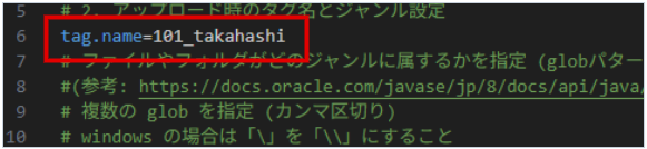 tag.name アップロード時のタグ名を指定します。