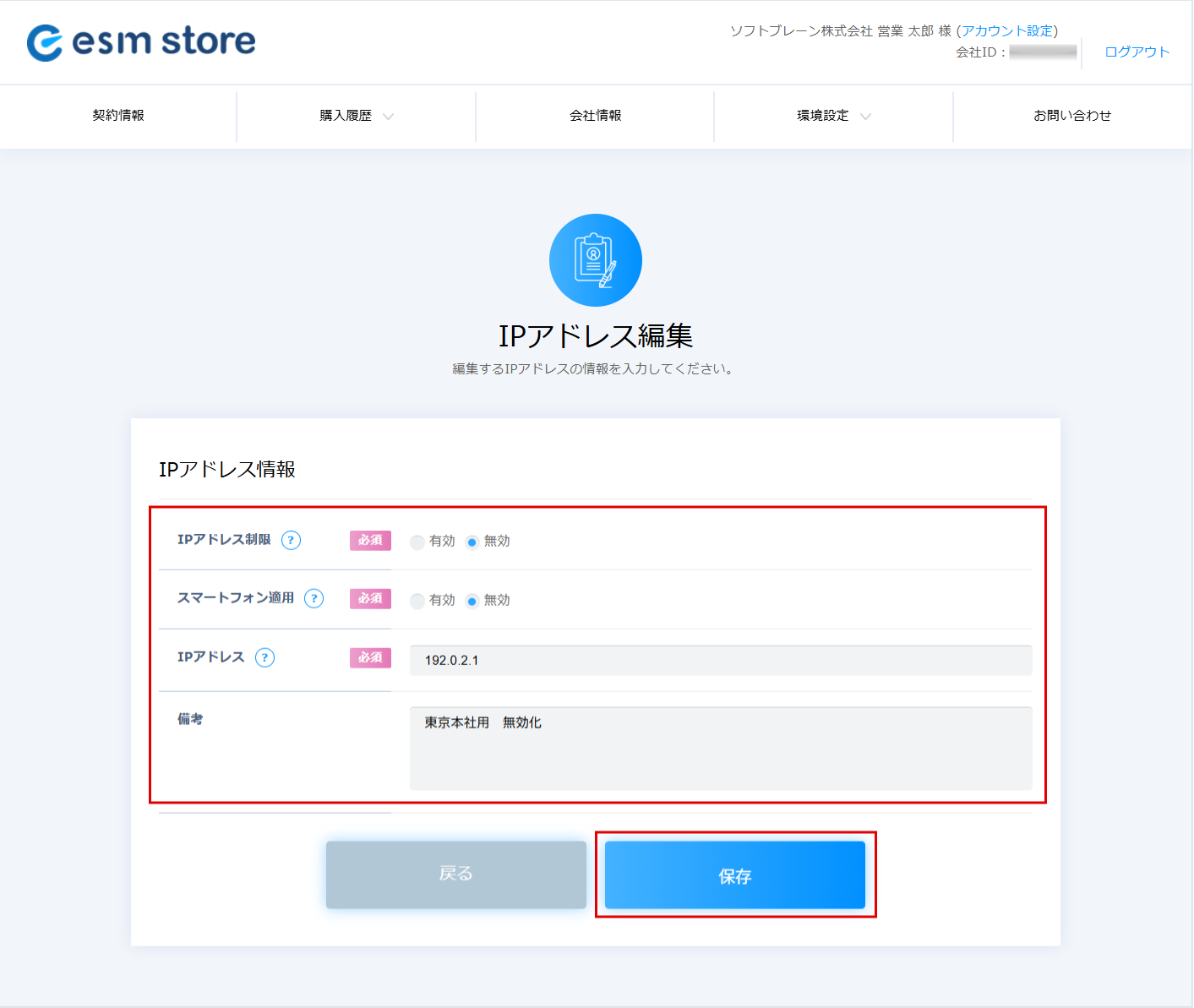 ・本機能で設定するアクセス元のIPアドレスは、インターネットを経由してeセールスマネージャーへ直接通信を行う機器の「グローバルIPアドレス」を指します。 社内LANなどの内部ネットワークで利用される「プライベートIPアドレス」とは異なります。