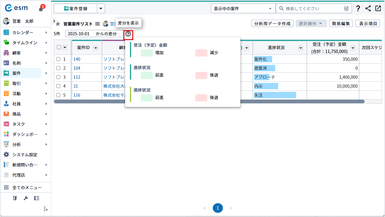 ・差分表示する項目の設定は、管理者権限を付与された社員より可能です。